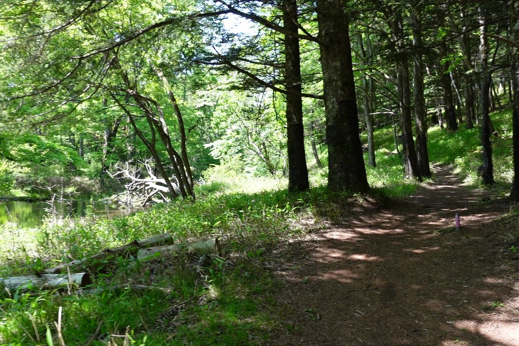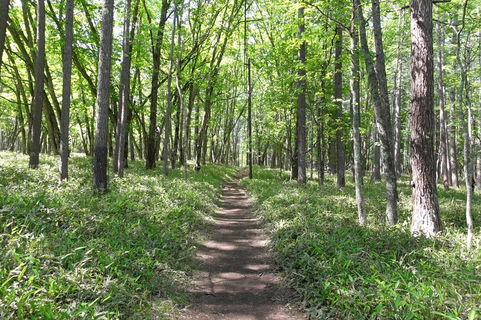 光徳駐車場を出発してカラマツ林を歩いて光徳沼を目指します。