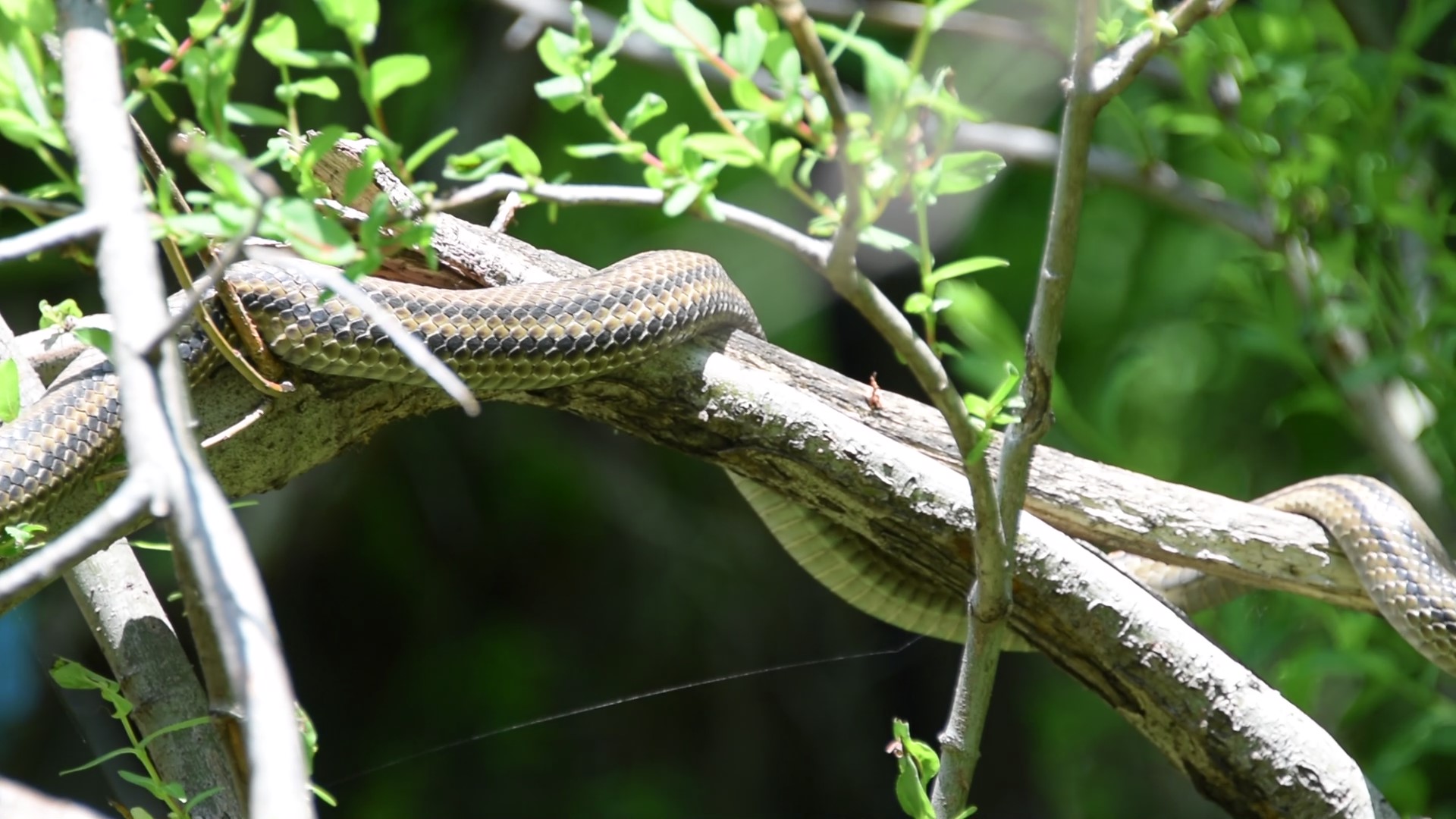 体温を上げるために日光浴をしていたようです。ヘビは地を這うイメージがありますが、実は木に登ることもよくあるんです!