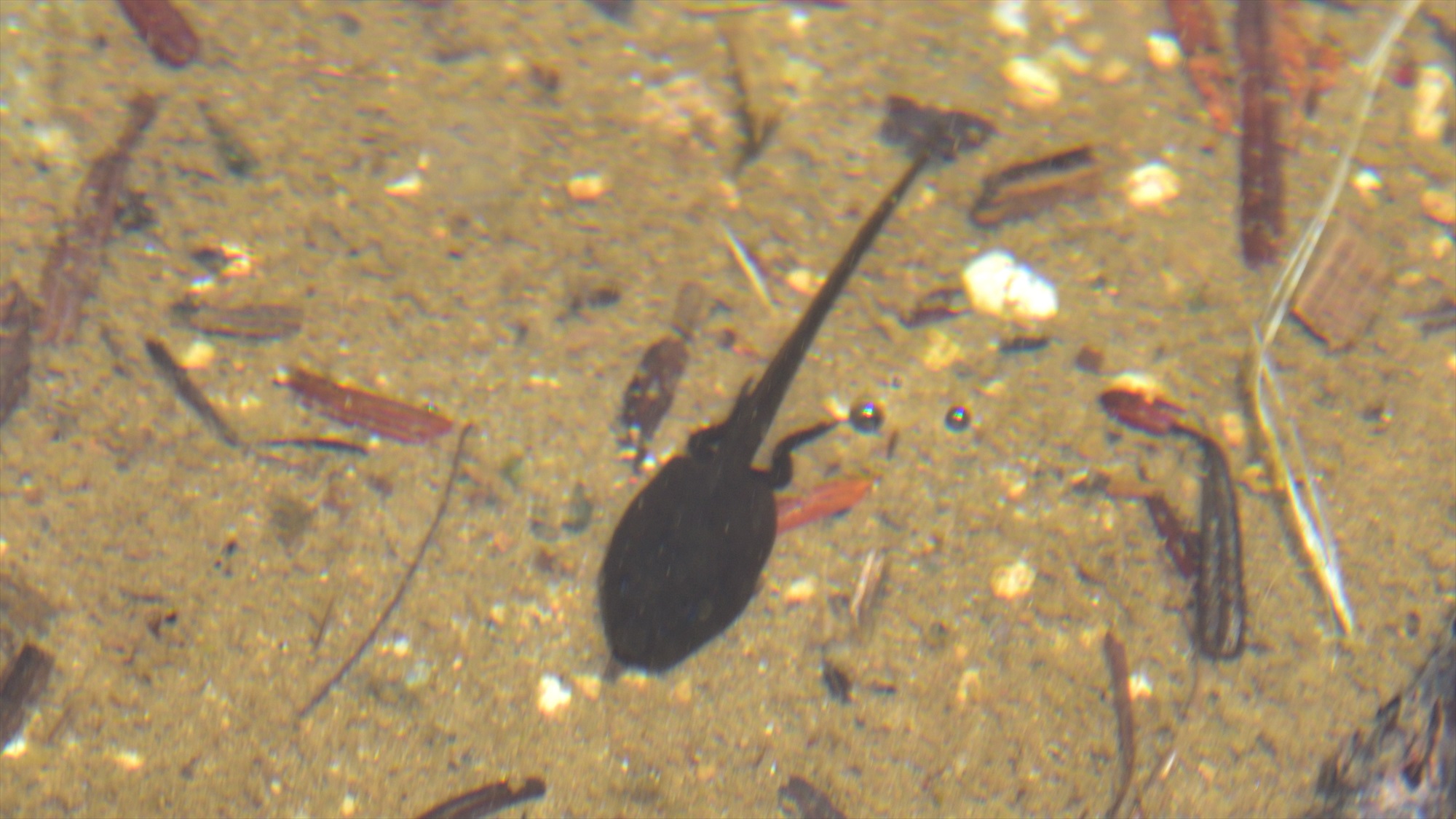 湖畔をよく見てみると、アズマヒキガエルのオタマジャクシたちがたくさんいました!