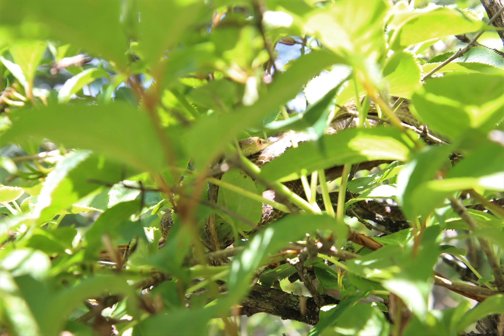 橋の横に生えている木の上でシマヘビがお休み中でした。お邪魔してすみません…