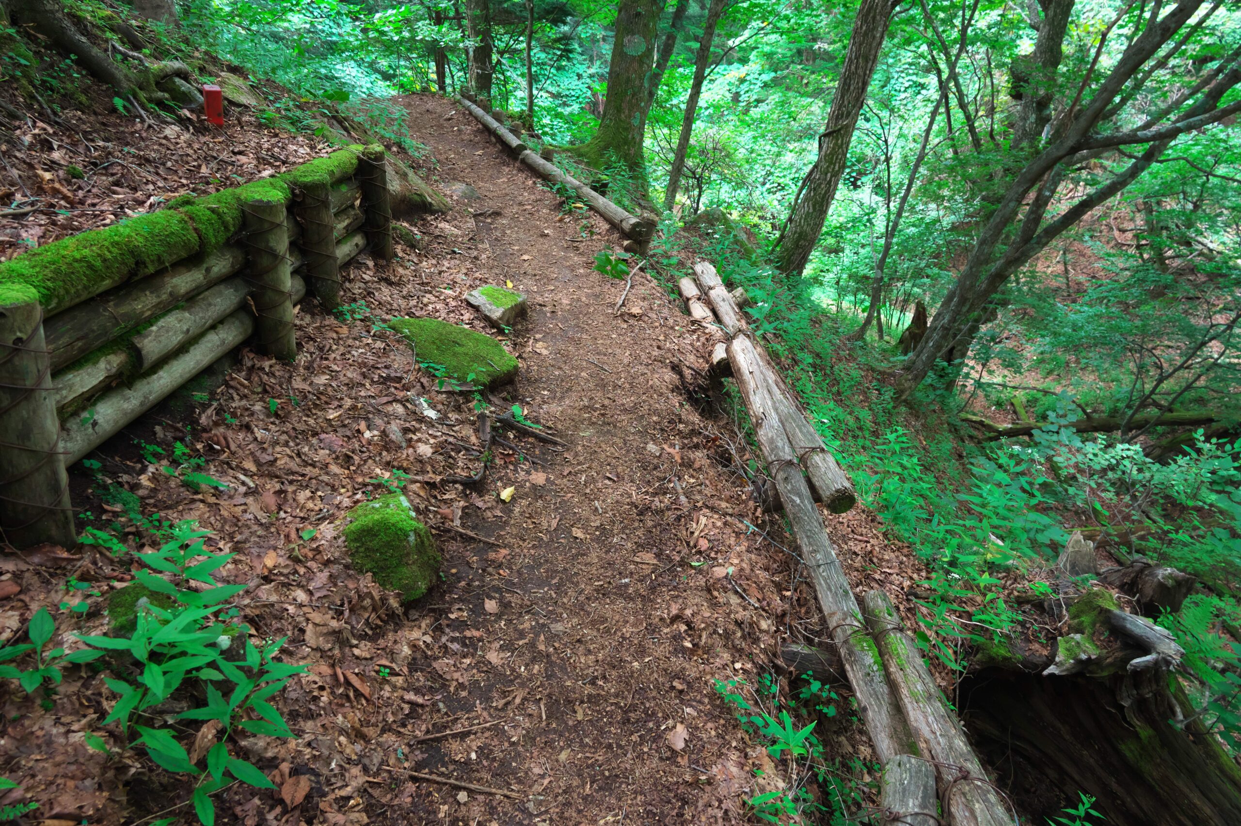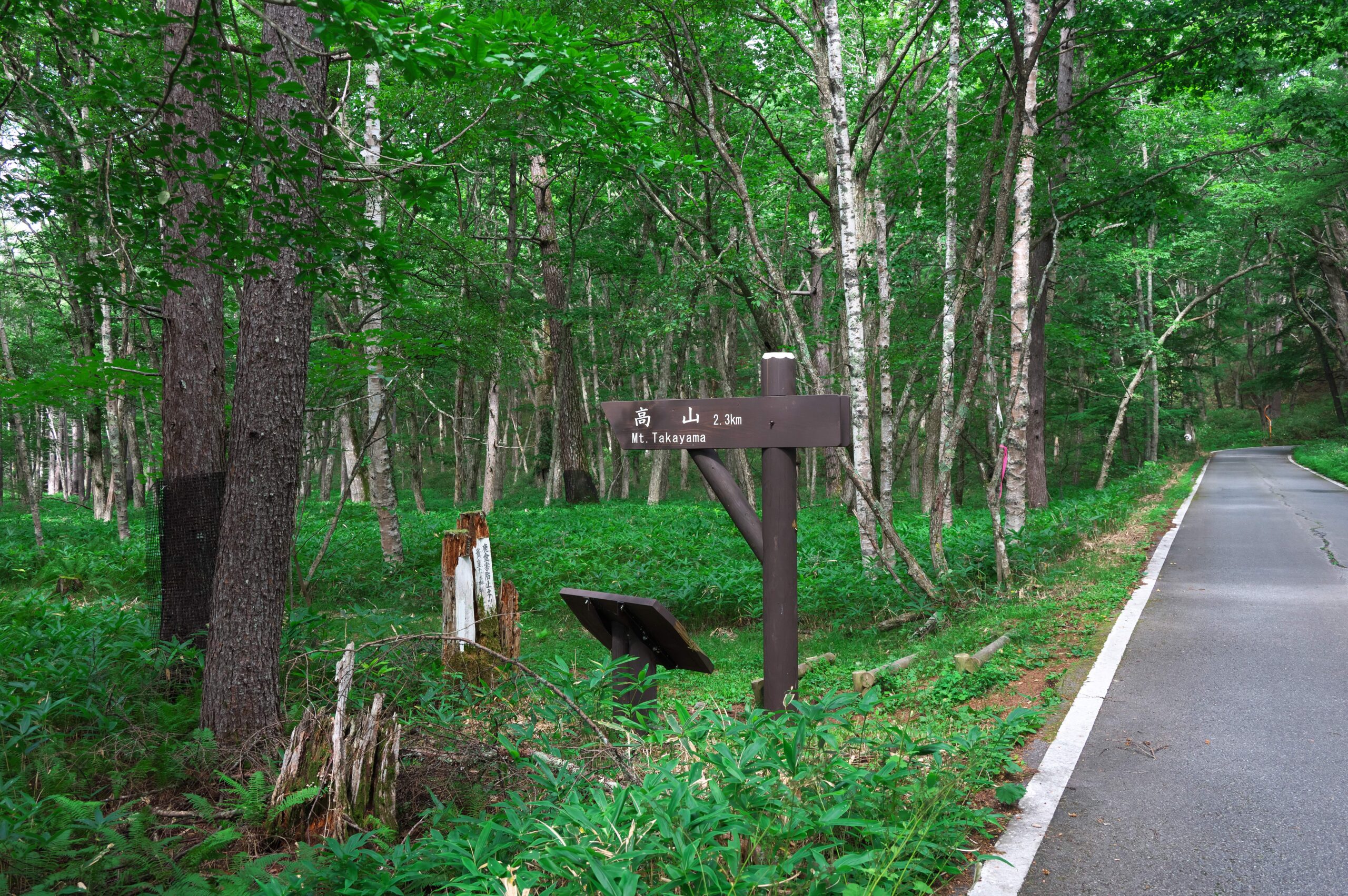 低公害バス路線沿線の高山入口から歩くと、勾配が緩やかなのでおすすめです。