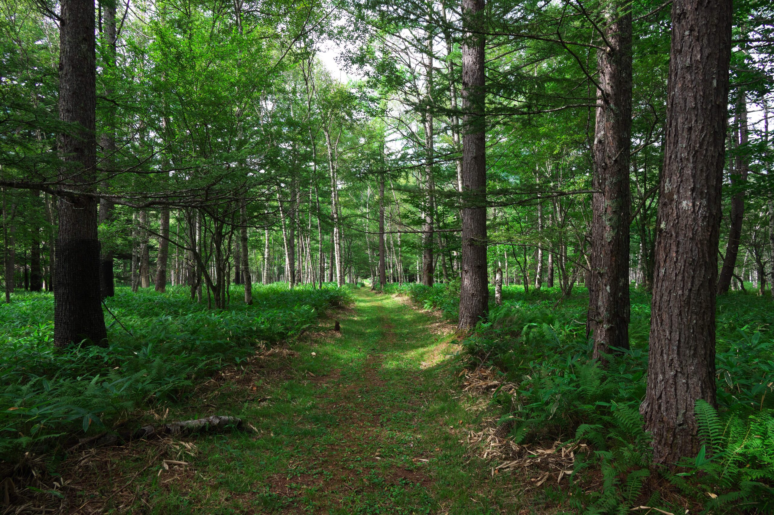 立ち並ぶシラカンバの白とその下に生えるササの深緑とのコントラストがとても綺麗です。その爽やかな雰囲気、一見の価値ありです!