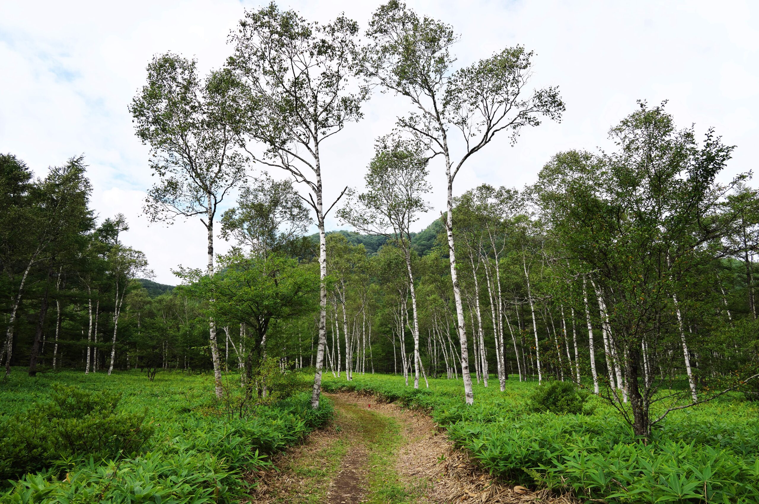 急に明るくなり、日当たりの良い場所を好むシラカンバが林を作っていて、通称「白樺平(しらかばだいら)」と呼ばれています。