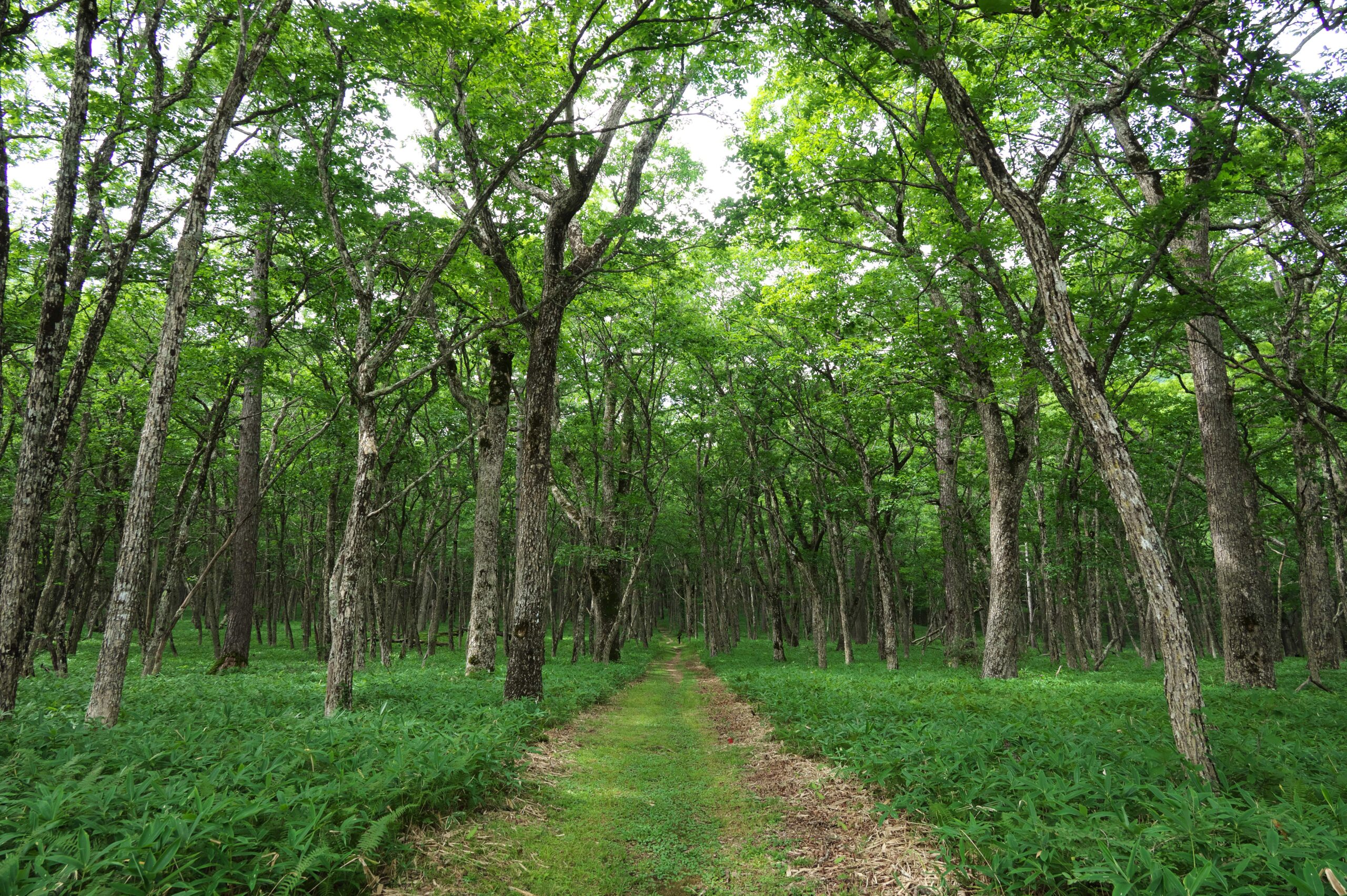 木の種類が変わりミズナラの森が続いていて、白樺平とは一変して、背の高い木々の間を進んで行きます。