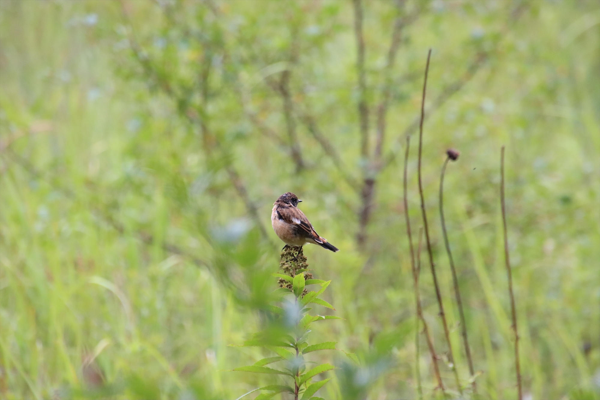 小田代原展望台付近の木道ではノビタキの若鳥が複数羽飛び回っていました。