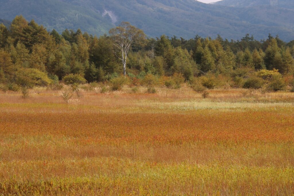 この時期の小田代原は草や低木が木々に先駆けて色づく草紅葉が見頃を迎えています。
