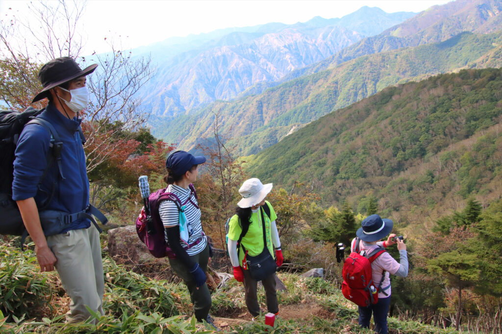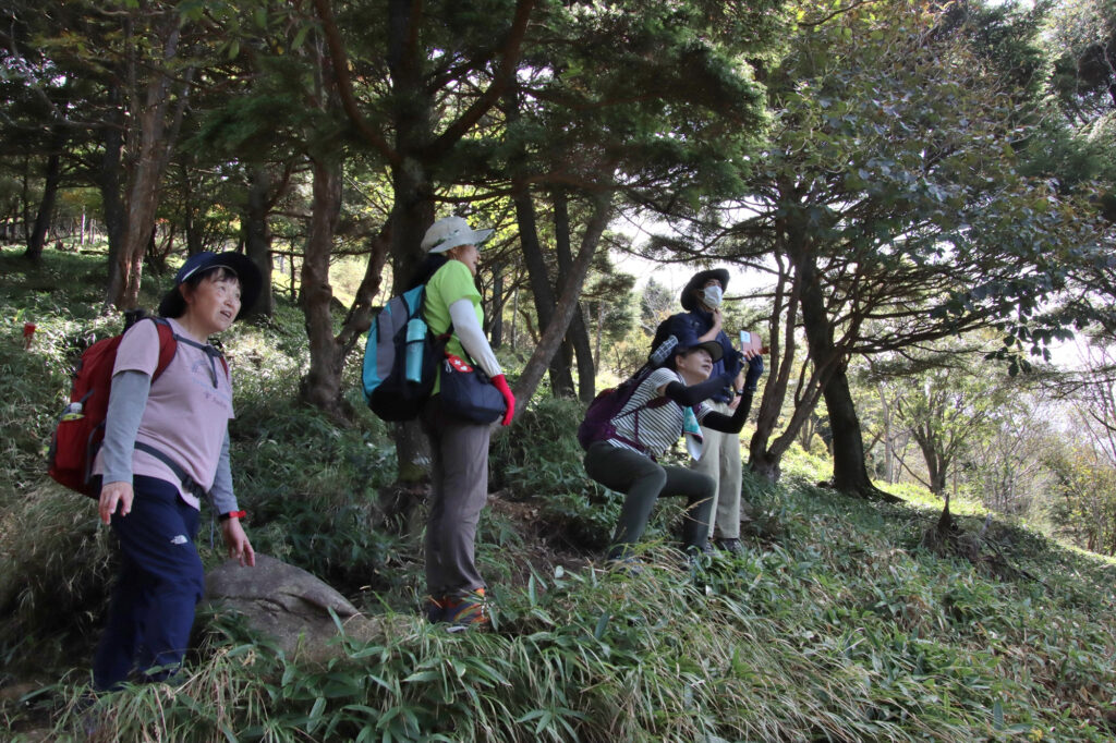 色付きの始まったシロヤシオなど、ほのかに紅葉の気配も楽しみつつ、登っていきます。