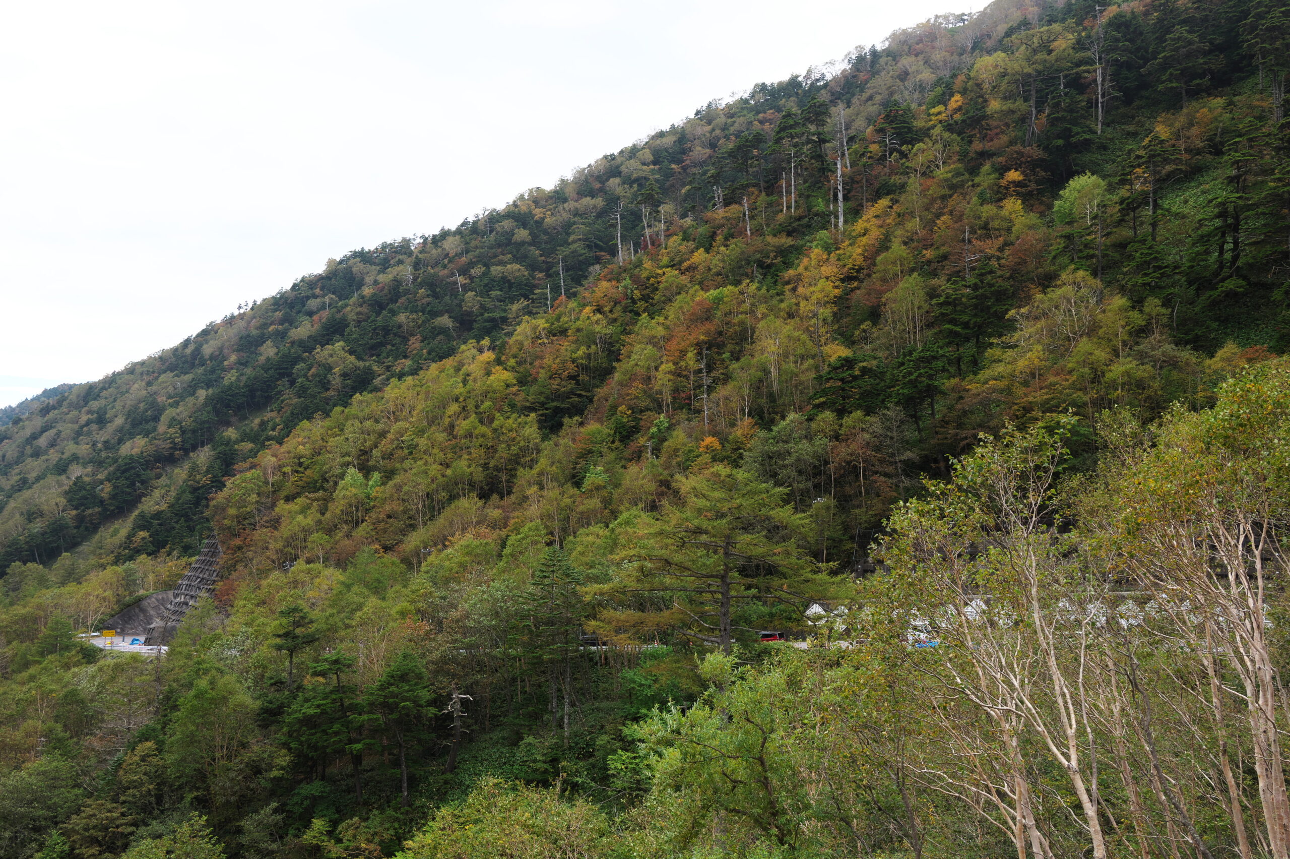 まずは標高1850mの金精峠ですが、ダケカンバの葉で山全体が黄色味を帯び始めていました。