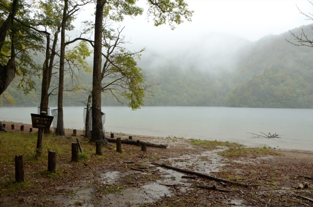 今日は天気が悪く、千手ヶ浜は雲に覆われて真っ白だったのですが、西ノ湖では嬉しい出来事がありました!