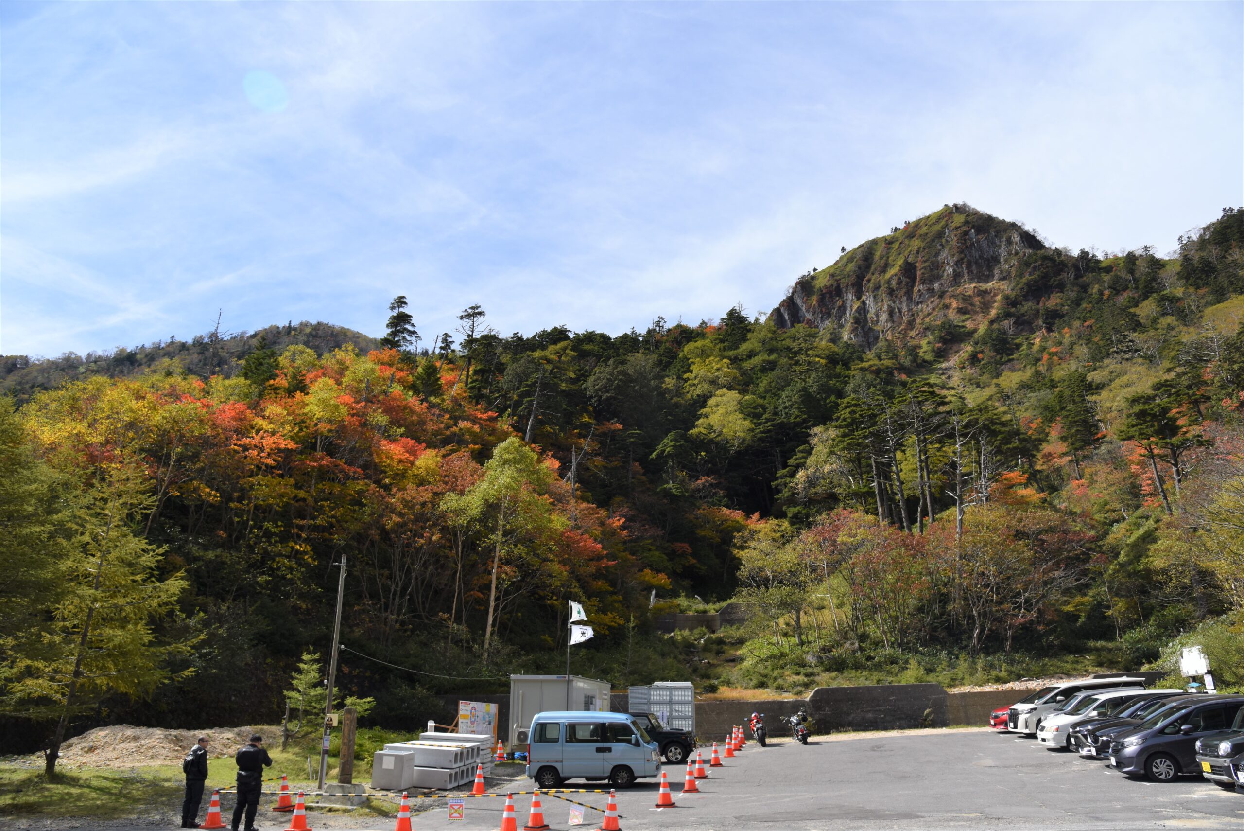 駐車場は金精トンネルのすぐ手前にあります。車の見通しが悪いので、駐車場に入るとき、出るときは十分にお気を付けください。