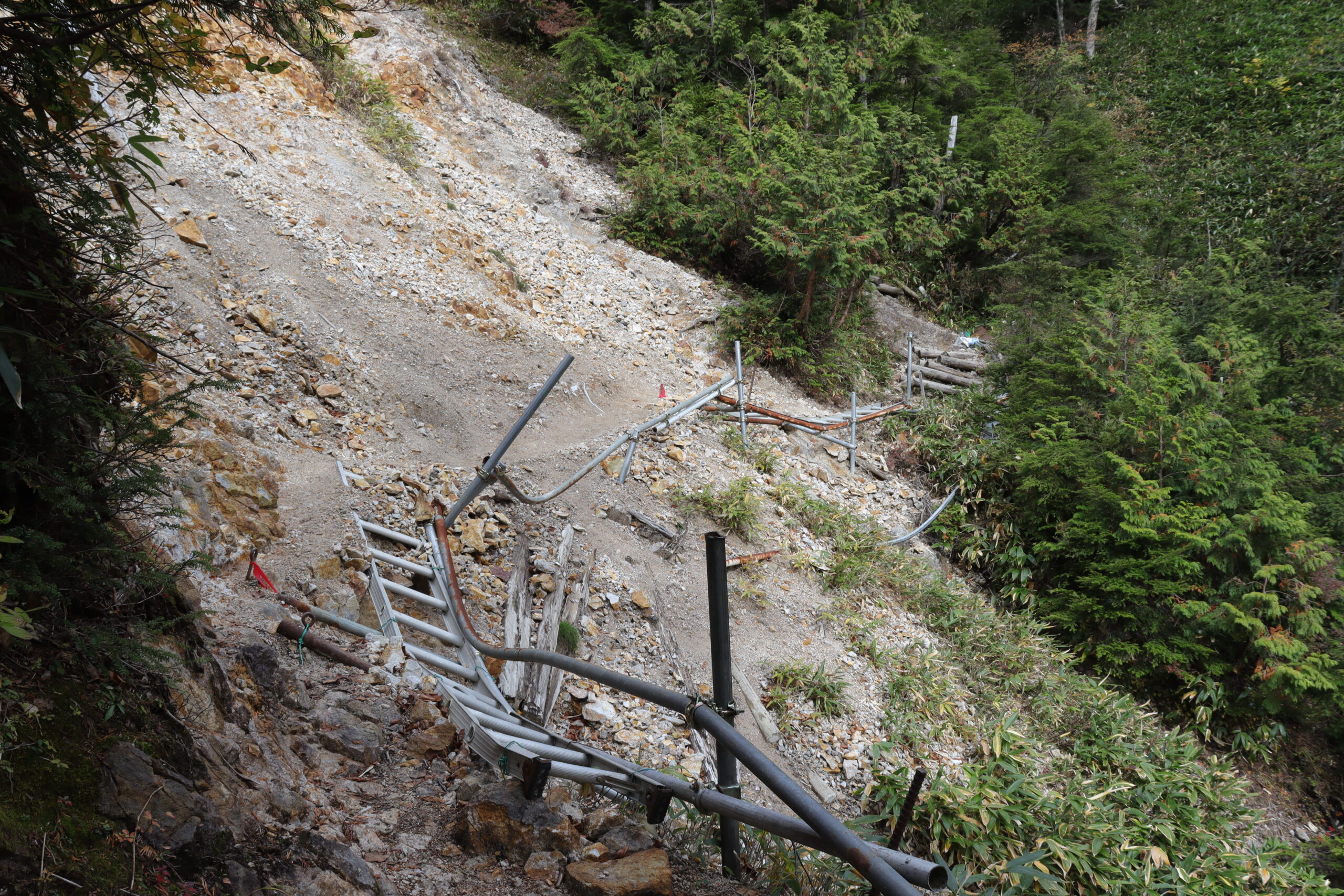峠までの道中、足元が悪い箇所が多いです。道幅が狭かったり、拳よりも小さい岩などでゴロゴロしていたり(ザレ場)、段差の大きい階段があったり。慎重に行きましょう。