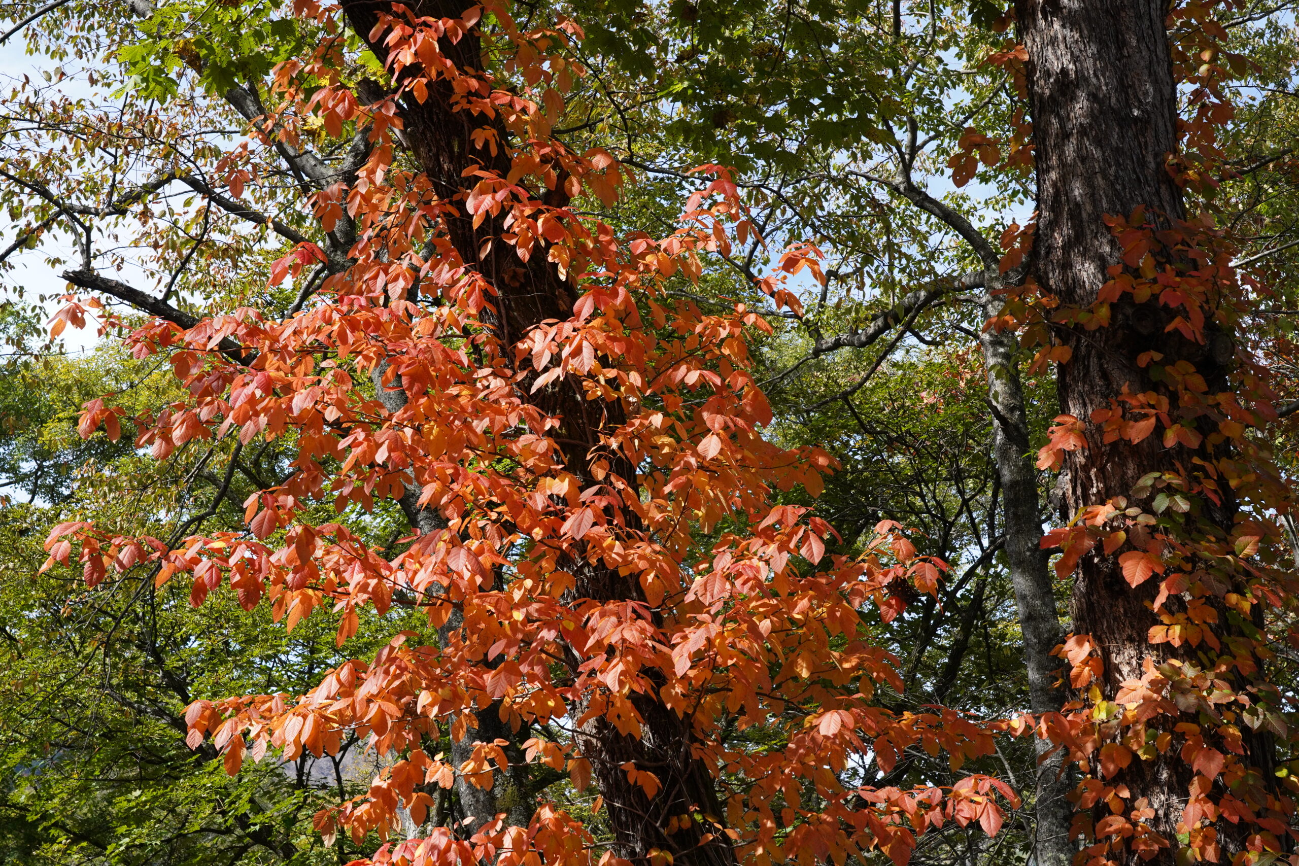 そのほか、私のお気に入りは、周りの木に絡みついているツタウルシ!