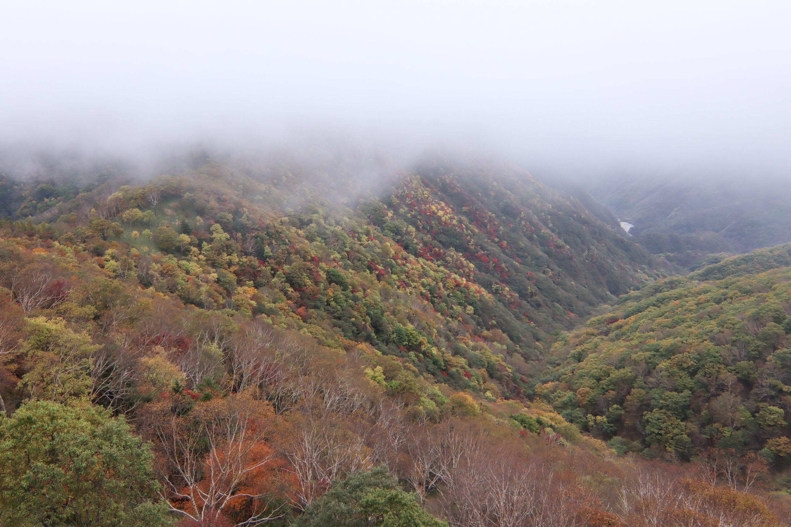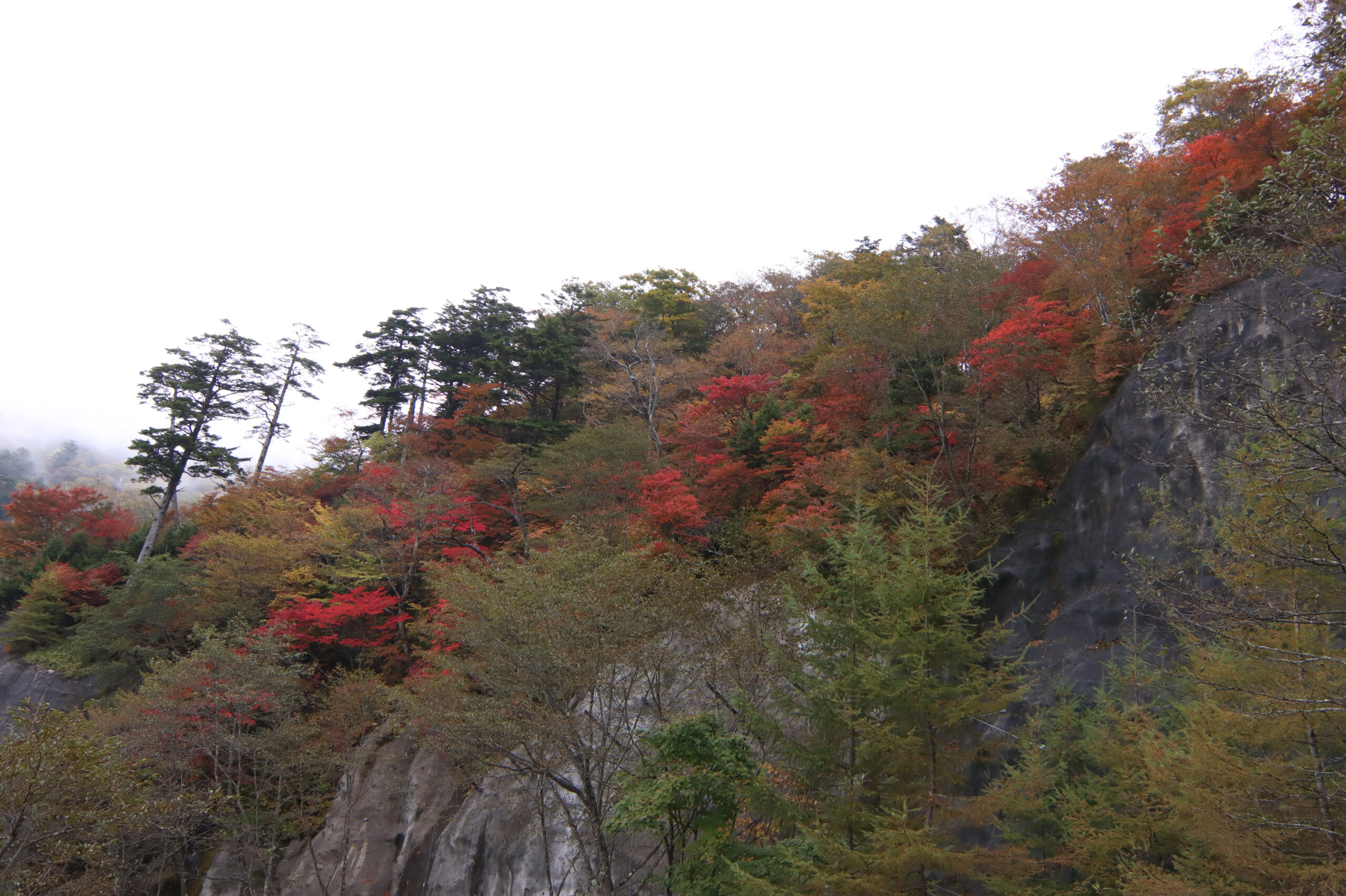 中禅寺湖展望台駐車場に着くと、霧で周りの山の紅葉の様子が見えなくなってしまいました…手前の紅葉だけでもかなり綺麗に見ることができたので、晴れた日には中禅寺湖とのコンビが期待できます!