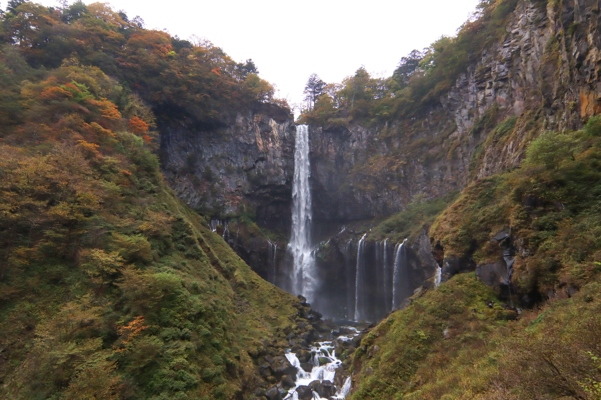 華厳滝正面は色付が少しづつ進んでいて赤や黄色がちらほら、見頃まであと少しといったところです。