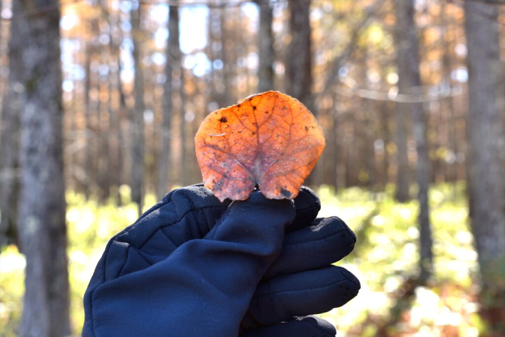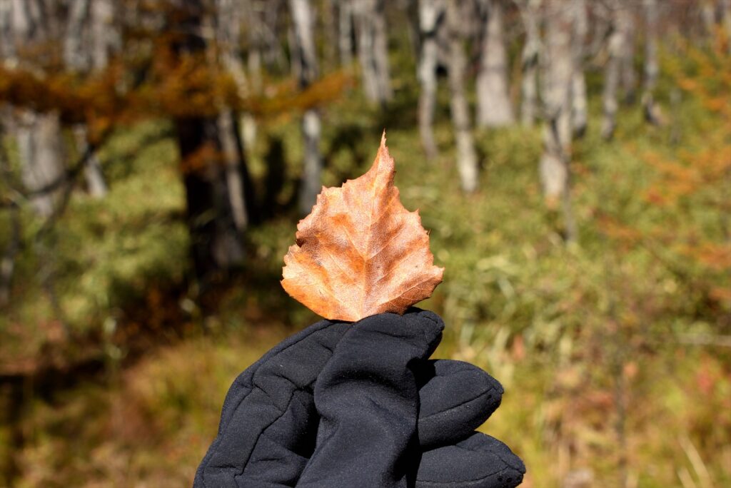 トランプのスペードのような形をしたシラカバの落ち葉を探してみてください。