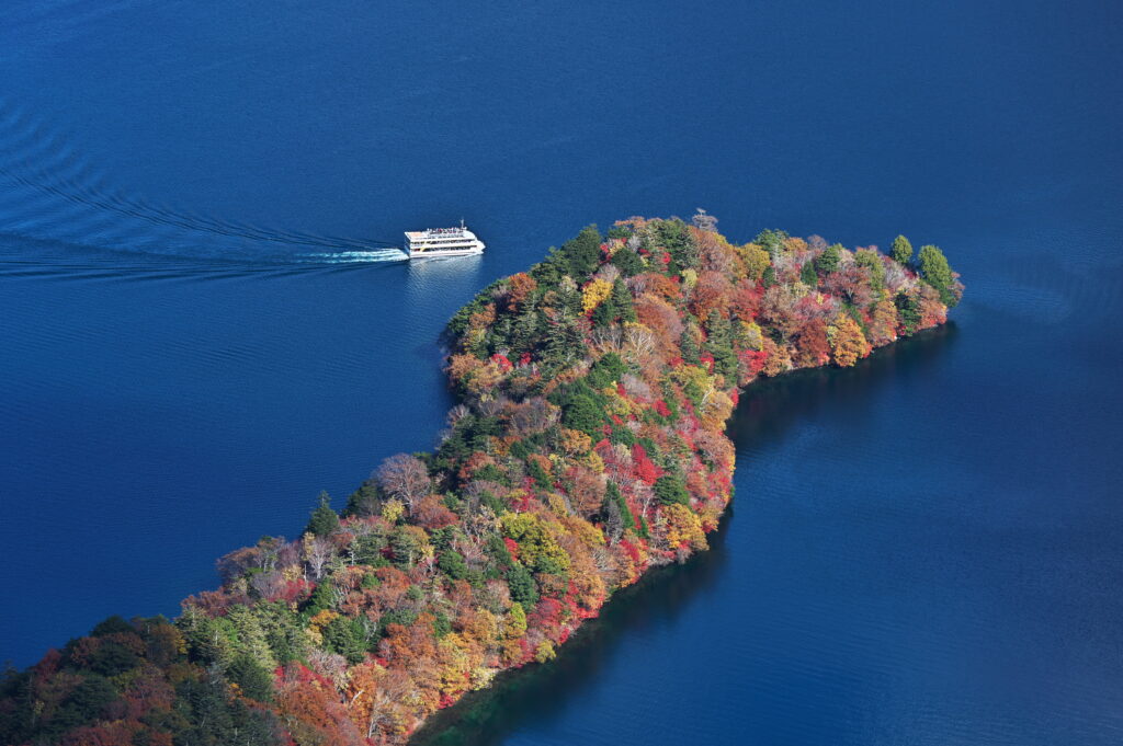 しかし、湖面近くや八丁出島の赤色はまだまだきれいにご覧いただけます。