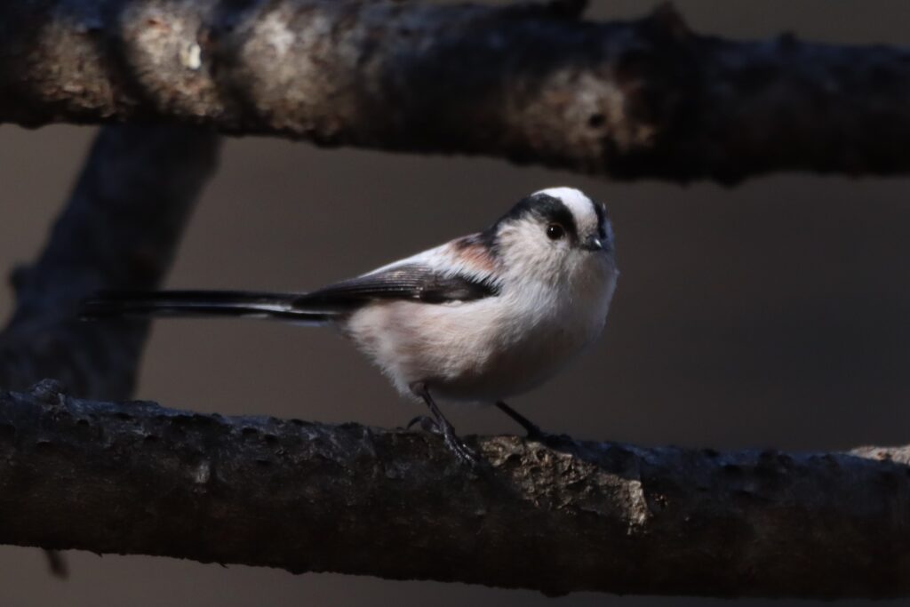 エナガです。くちばしと目の位置、大きさが絶妙なバランスで整っていて、キャラクターのようなすごく可愛らしい顔をしているんです。