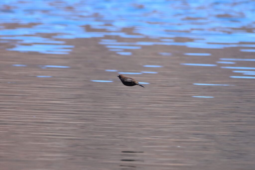 他には目の前をまるで新幹線のように一瞬で通過してくカワガラスも見られました。あまりじっとしていないのでじっくり観察するのは難しい鳥ですが、登場するときにはいつも「ビッビッ」と鳴きながら近づいてくれるので、千手ヶ浜で定点観察をしていると発見すること自体は簡単ですよ!