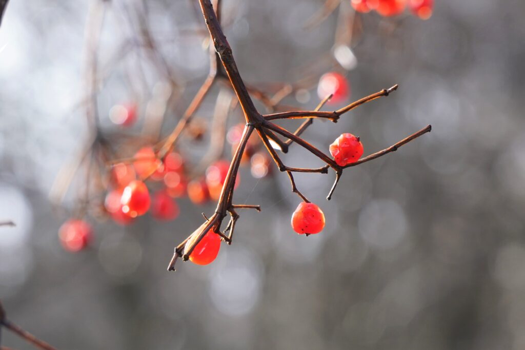 今後は雪が降り積もれば、モノクロの風景にカンボクの赤。なんて景色も楽しめますが、さらに寒さが増してくると実はだんだんと萎み、また餌の減ってきた野鳥たちがカンボクの実をイヤイヤ(?)食べるようにもなってきます。そんなカンボクも冬鳥も、タイミングを逃さず楽しんで頂きたいです。(kobo)