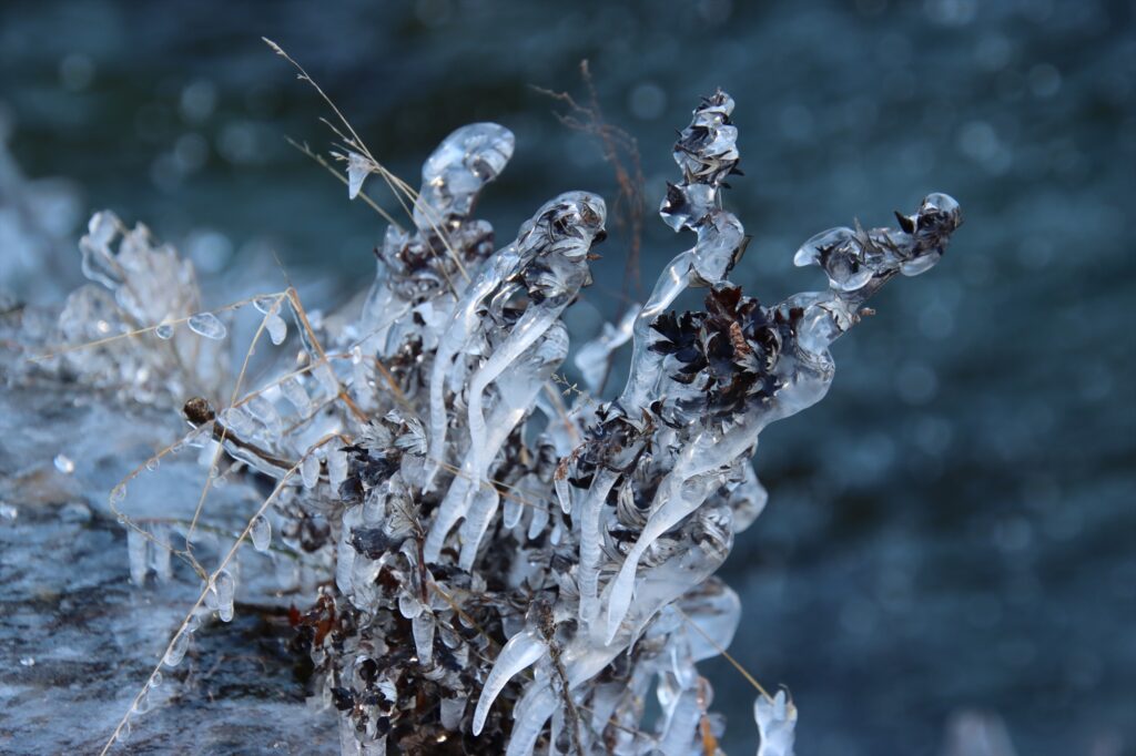 今回は岸壁から生えている木々が綺麗に凍ってました。
