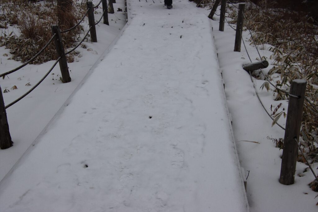 また、場所によっては凍った雪の上に積雪しており、足場が悪いところもありました。