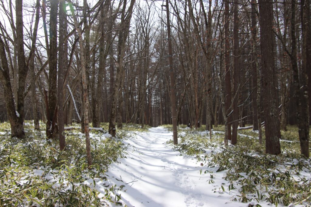 牧場から光徳沼へ向かう歩道もしっかり積雪しています。