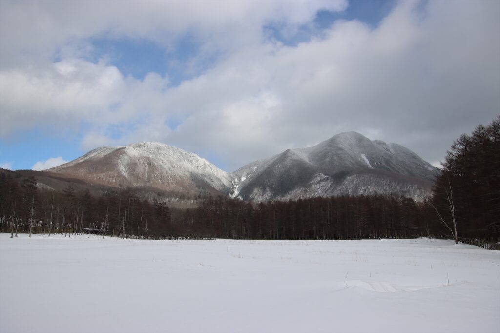 雪の中にそびえる山王帽子山・太郎山を望むことが出来ますよ!