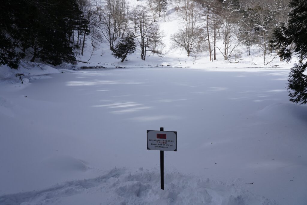 蓼ノ湖はほとんど凍っていました。