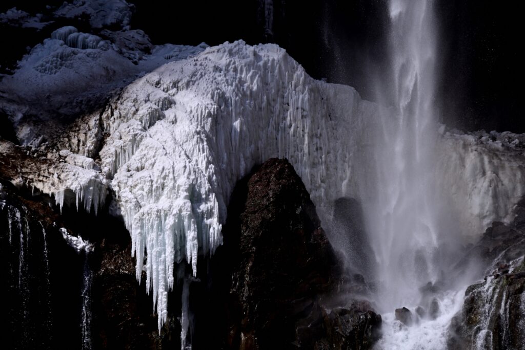滝の周りには立派な氷塊や