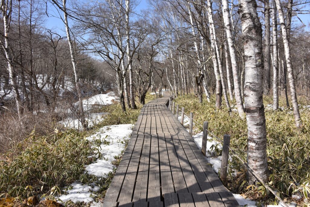 木道上の雪は日陰などでまだ残ってはいますが、大部分で溶け木道が露出しているところがほとんどでした。
