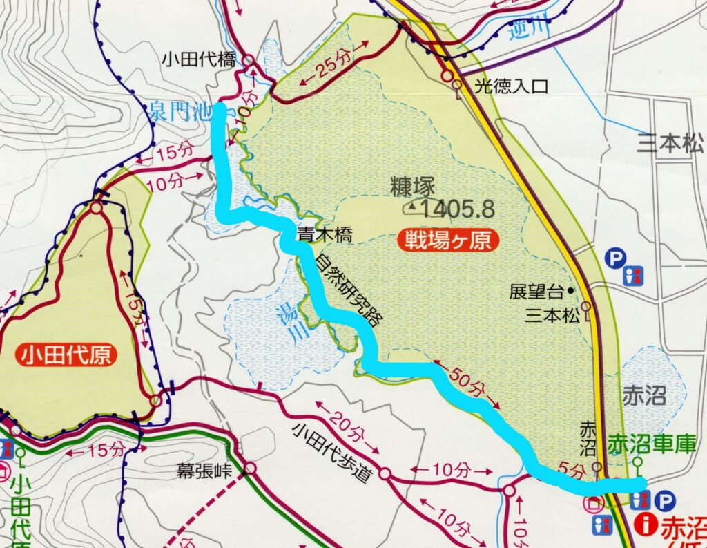 今回歩いたコースはこちら!(水色の部分)