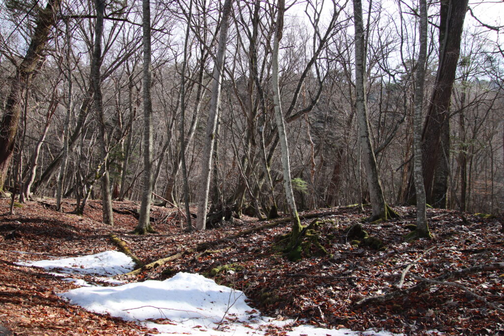 コース全体を通して所々に雪があり、森には冬らしさが残っています。