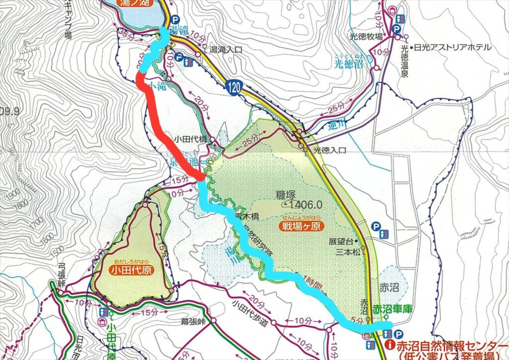 今回は赤沼から湯滝まで、戦場ヶ原を通って歩いてきました。