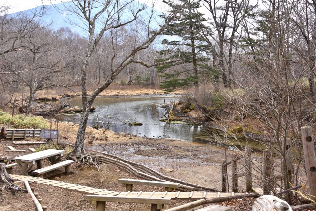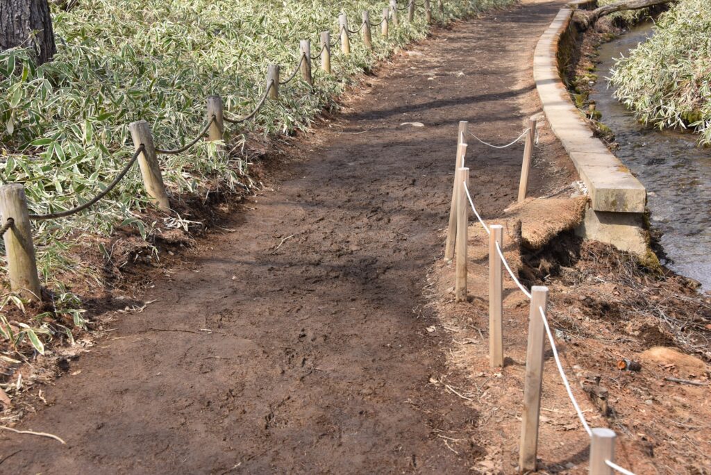 最近の博物館のブログでご紹介したときは、まだ雪どけの影響でぬかるみがひどかった赤沼周辺の土の道は