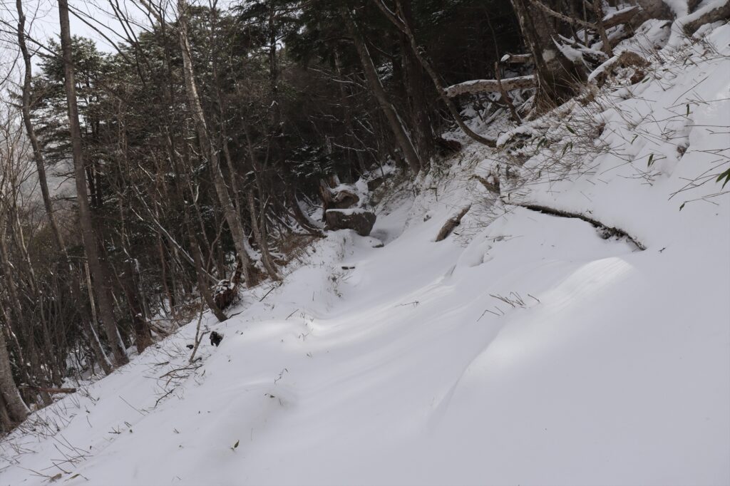 新雪の下に雪の塊が隠れていて、滑りやすいところもいくつかありました。(今日はチェーンスパイクを使用しました。)
