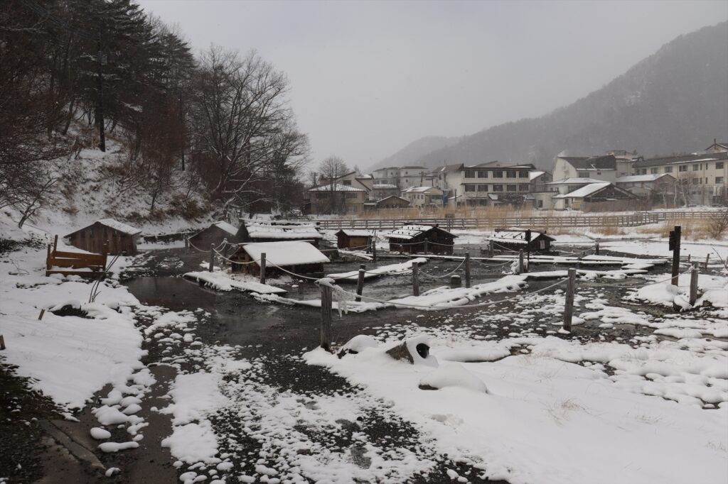 (源泉の様子↓)一夜にして冬景色に戻っちゃいましたね。