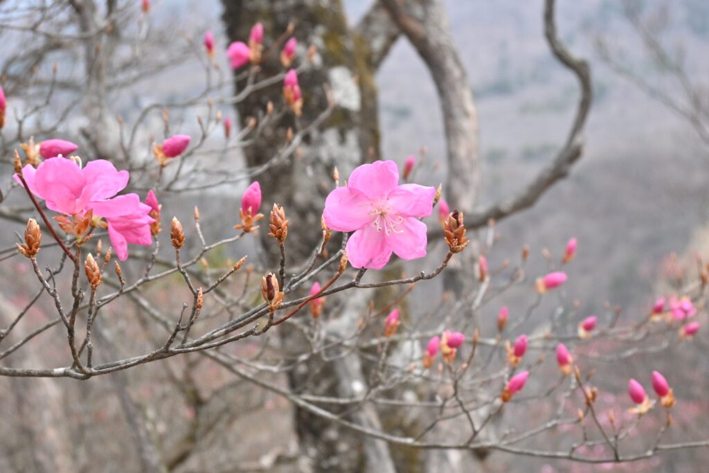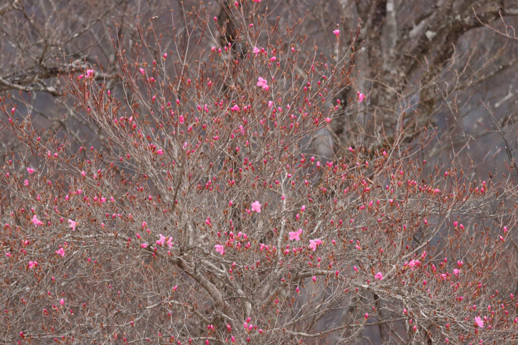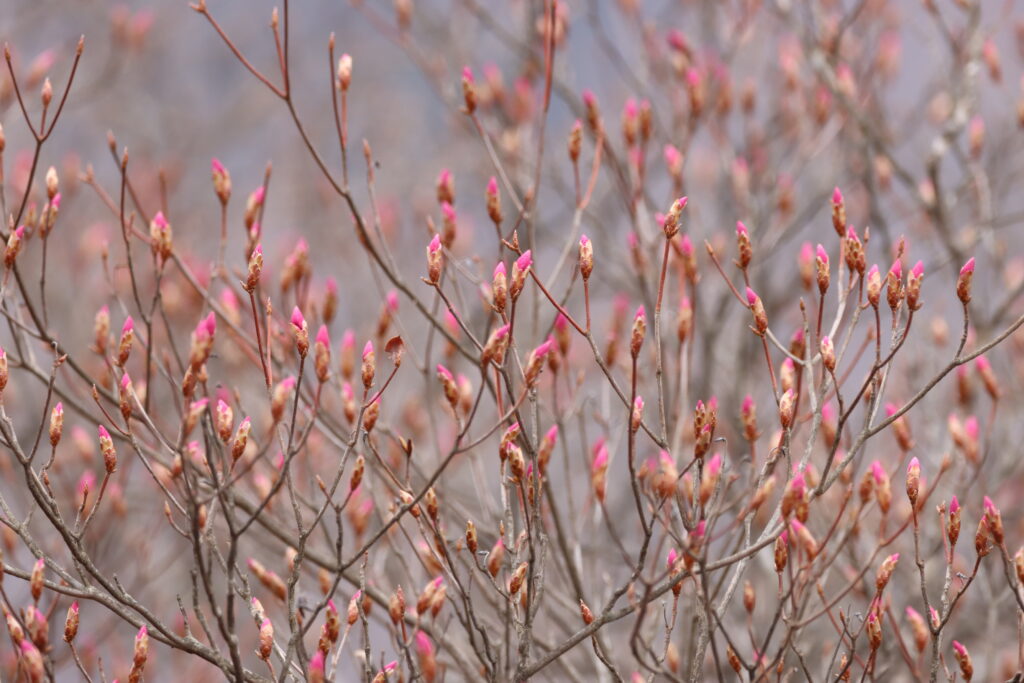 遠目から見てもピンクが多く見える事からわかるように、今年はつぼみの数が多いようですので、今後天気のいい日が続けば1週間前後で見頃を迎え、かなりの見ごたえが期待できるのではないでしょうか!?例年よりかなり早くアカヤシオの開花が始まっているので、見頃を逃さないようにご注意ください!(鈴)