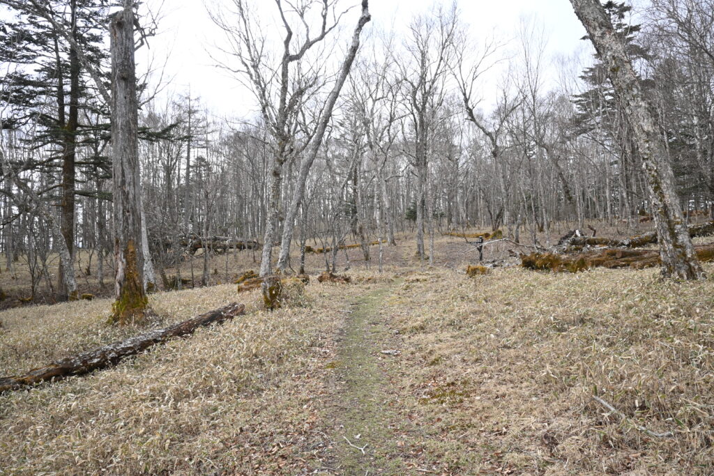 展望台から20分ほど進むと日当たりのよい開けた場所にに出ます。