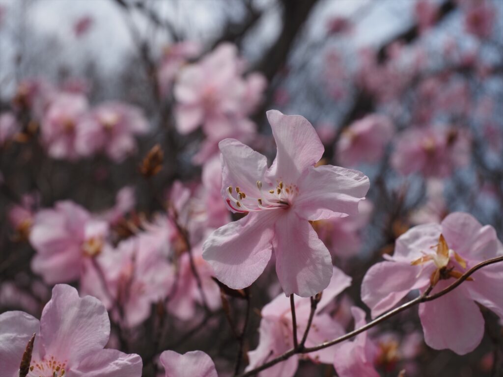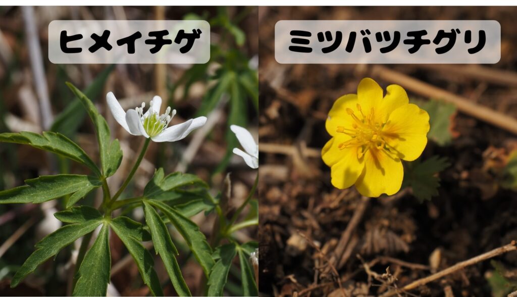 木に咲くアカヤシオを見上げていて、首が疲れてきたらぜひ足元にも目を向けてみてください。