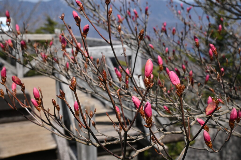 なんと、まだ開花していませんでした!つぼみがちょうど膨らみ始めたくらいですが、程よく冷え込んだおかげか、つぼみの色は濃く、GW終盤頃にはなかなかの見ごたえが期待出来そうです。展望台からの絶景と合わせてぜひご覧いただきたいです!