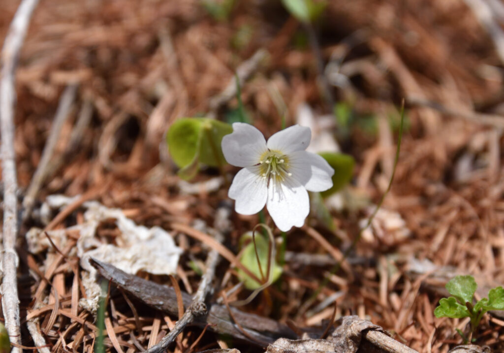 西ノ湖を出発すると、白いお花が綺麗なコミヤマカタバミがお出迎え。こちらも4月頃に開花する春の野草です。