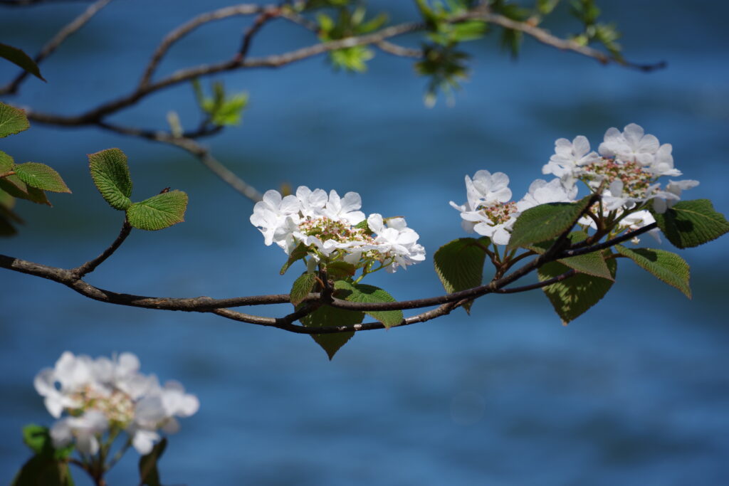 こちらはオオカメノキの写真ですが、白色のお花が湖面のブルーをバックによく映えており、とても綺麗でした。