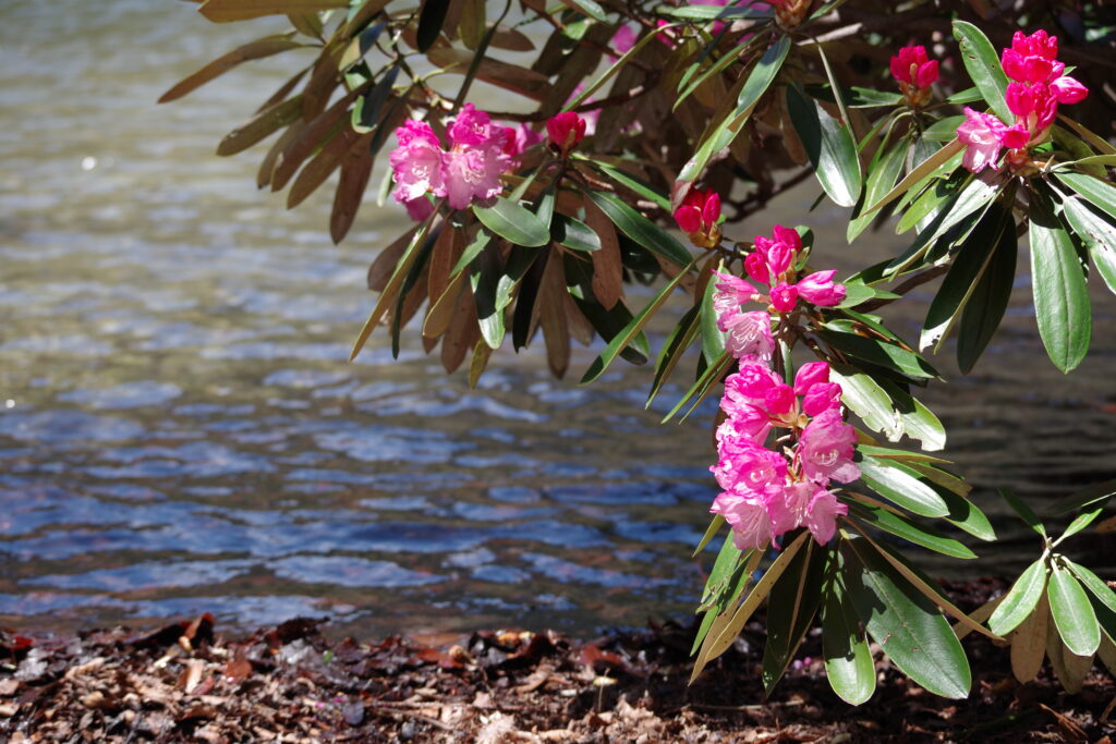写真のように湖畔をバックに咲く姿もとても綺麗でうっとりします。