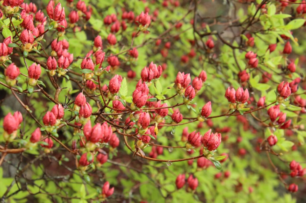 シロヤシオもちらほら開花が始まっていますが、多くの株は膨らんだつぼみの状態。