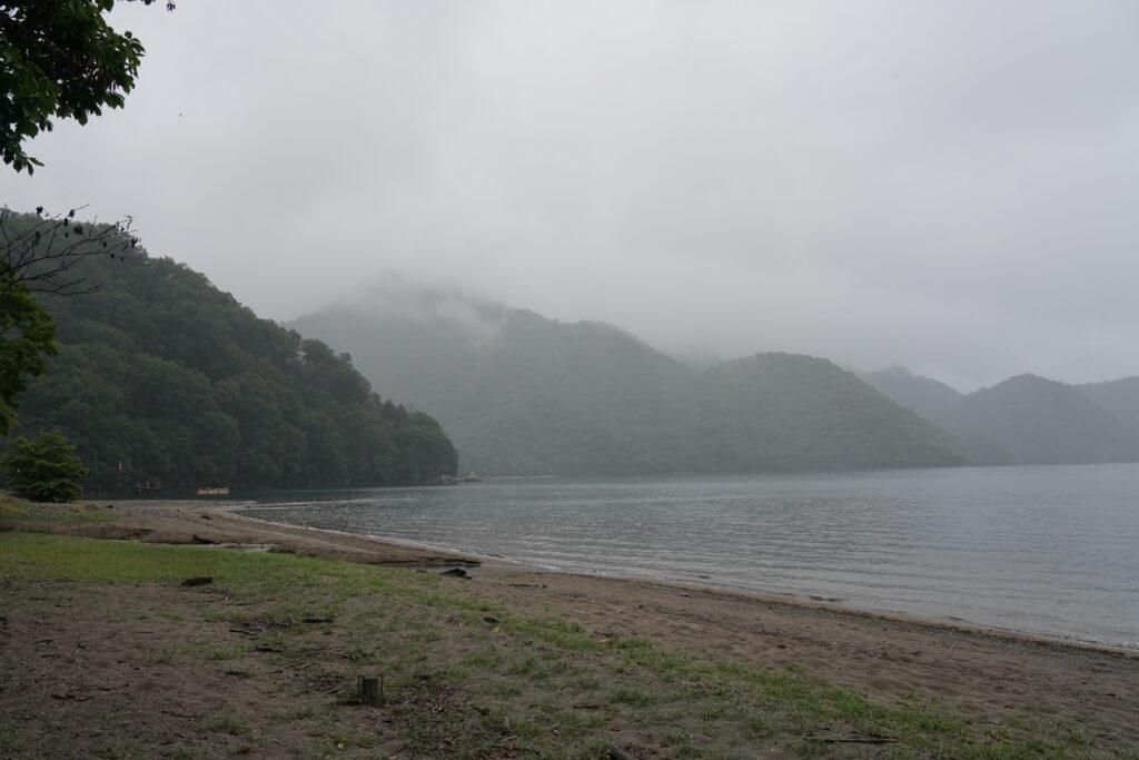 今回は西ノ湖入口から歩きはじめ西ノ湖へ、その後千手ヶ浜を目指して千手の森歩道を歩きました。あいにくの雨だったものの、合羽等の雨対策をしっかりと行い出発!さて湖の様子は?