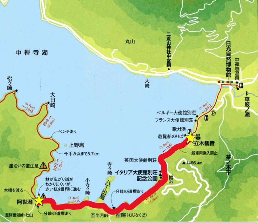 今回は中禅寺湖南岸へ行ってきました。歌ヶ浜駐車場から阿世潟までの1時間ほどのコースです。