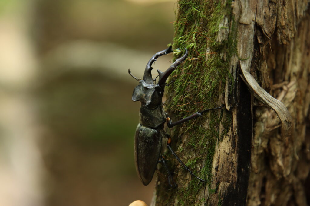 ハイキングコースの脇の倒木に何やら黒い塊がもぞもぞ動いていました。