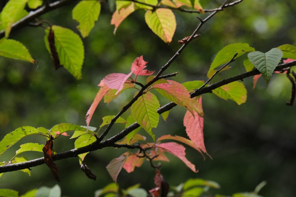 頭上にはヤマザクラの紅葉が。