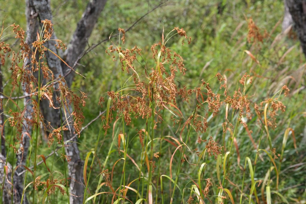 稲穂の様にも見えるアブラガヤの穂も大きく実っています。