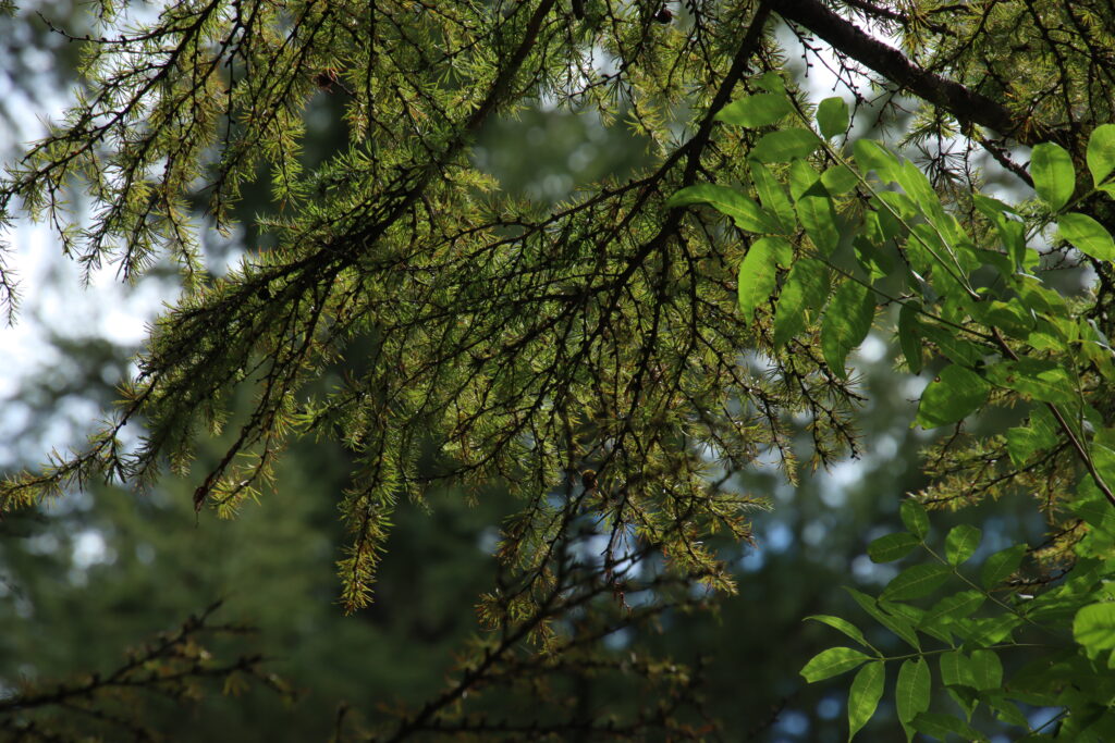 カラマツも一部でほんのり黄色味を帯び始めているものが。